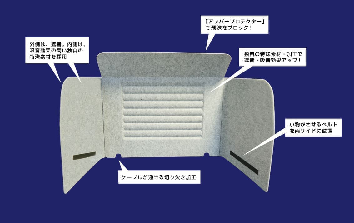 ●独自の防音技術を駆使したパーテーション。外側は音を反射し内側は音を吸収する独自設計