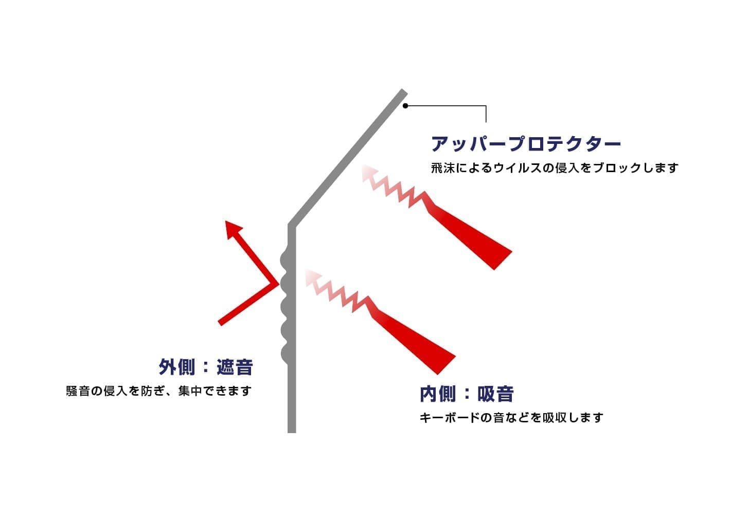 また、「アッパープロテクター」が、上からの飛沫によるウイルスの侵入をブロック!